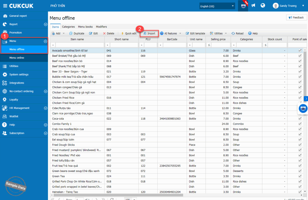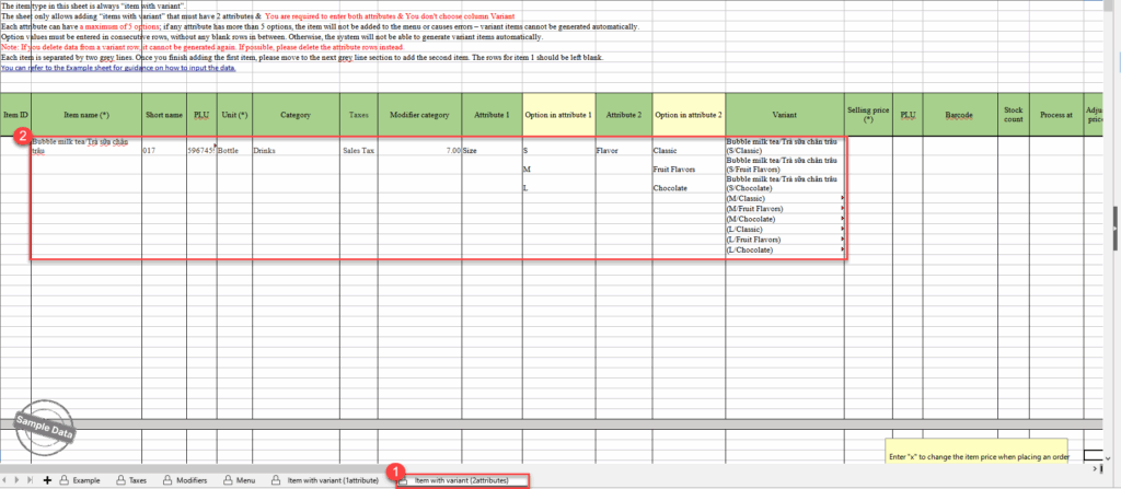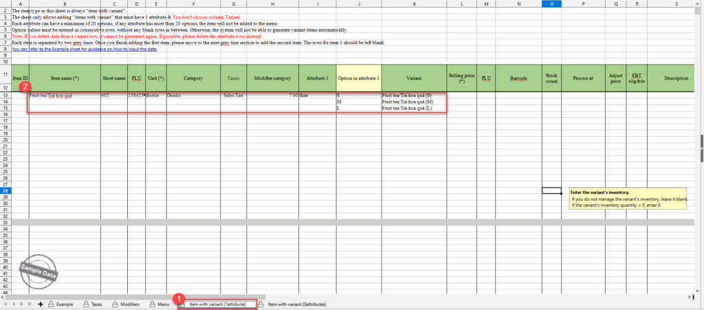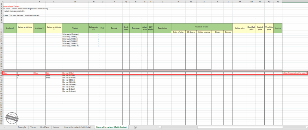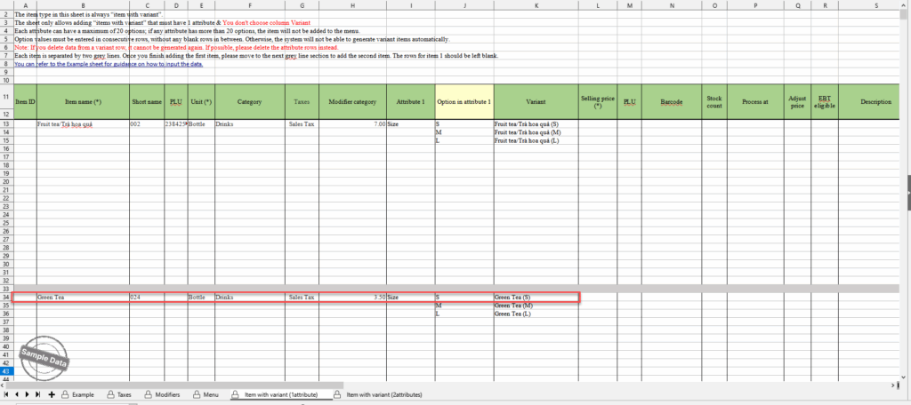 The manager can quickly import items with variant.