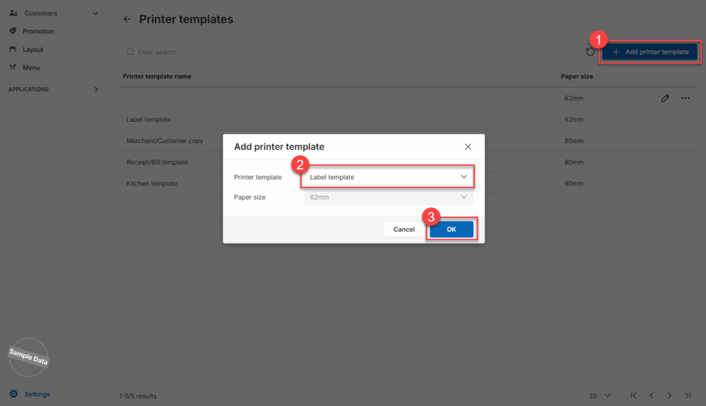 To add a new label template, click Add printer template and select Label printer. Click OK.