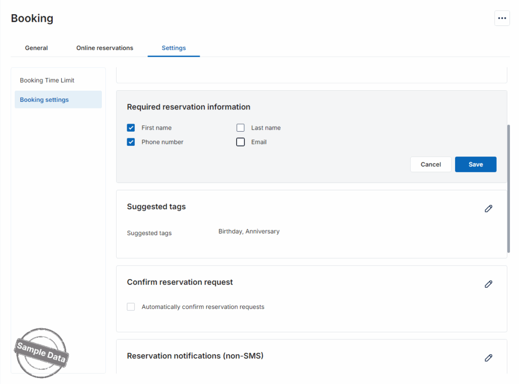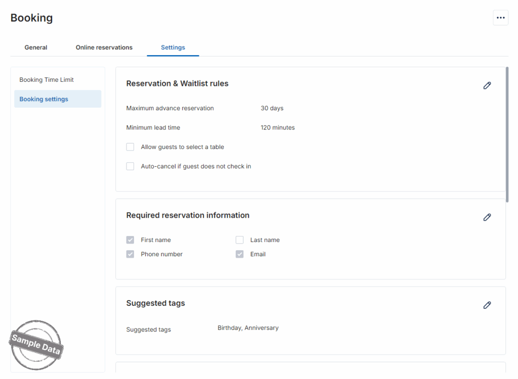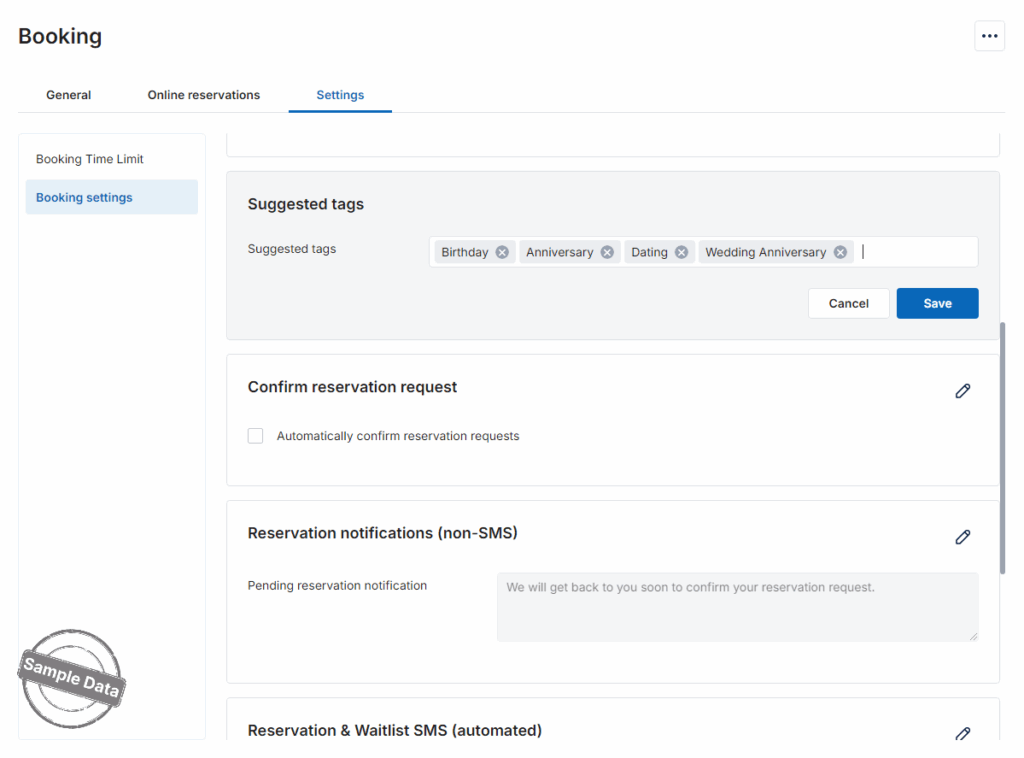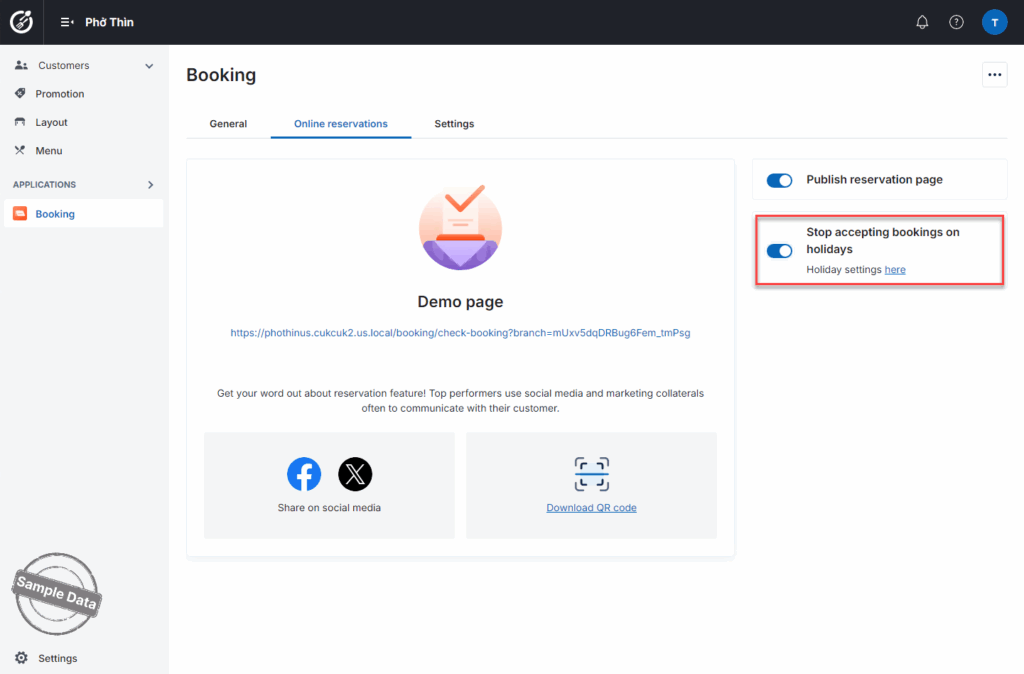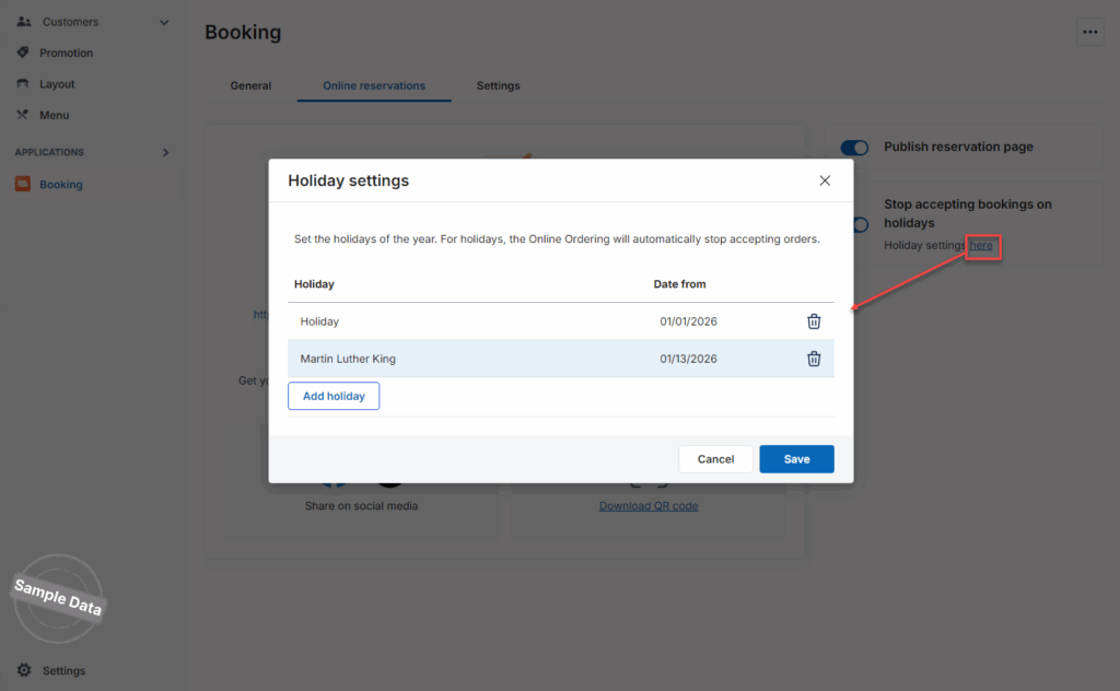 If there are any days when the restaurant does not accept online bookings, turn on Stop accepting bookings on holidays.