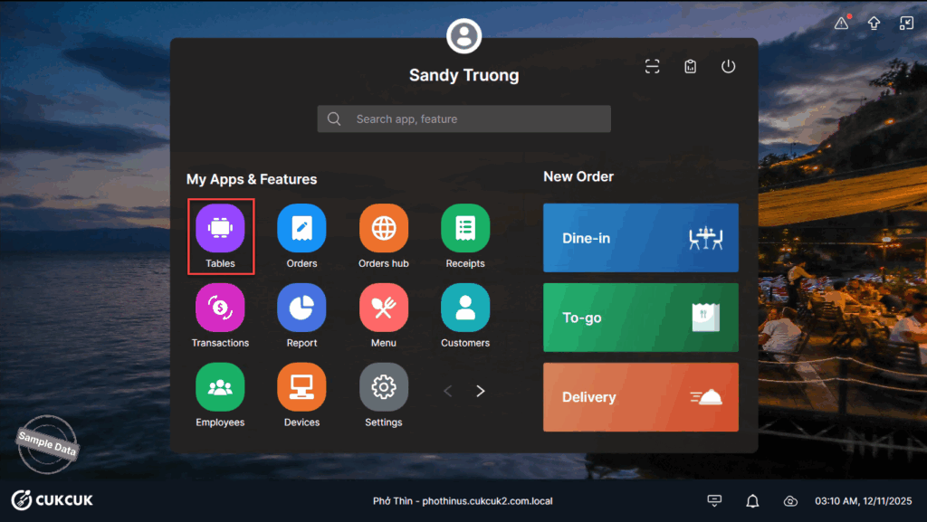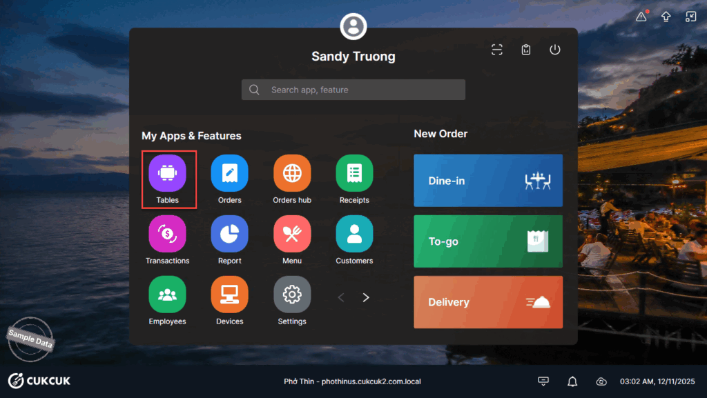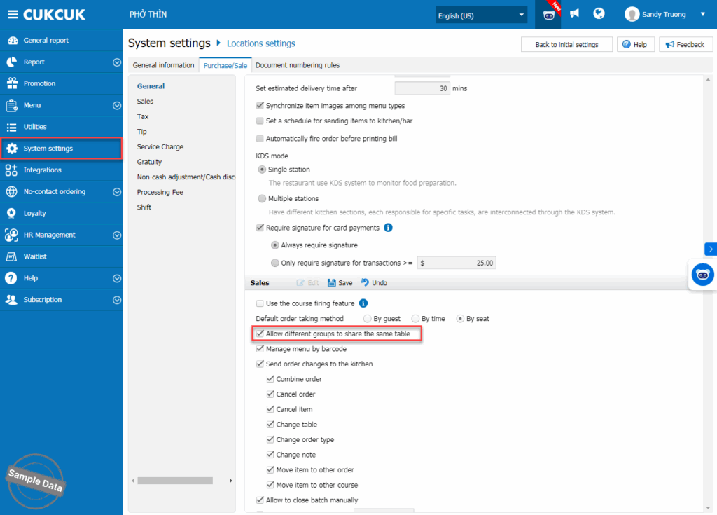 On the management page, go to System settings/Location settings. On Purchase/Sale tab, click Edit on Sale and check Allow different groups to share the same table.