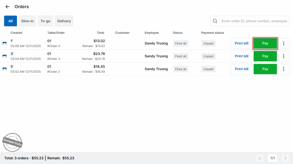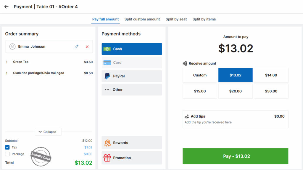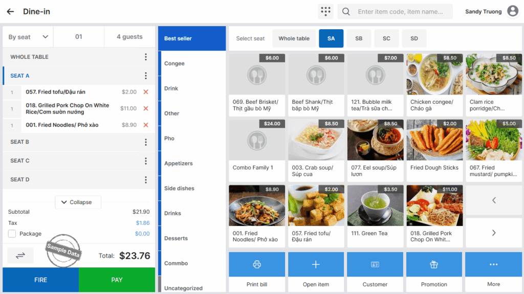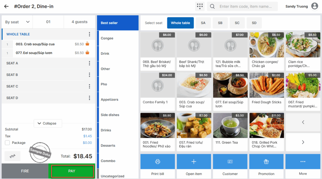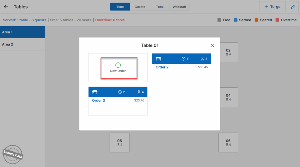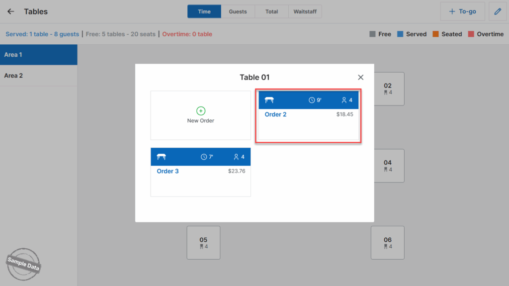The staff can take multiple separate orders for different groups of guests sitting at the same table.