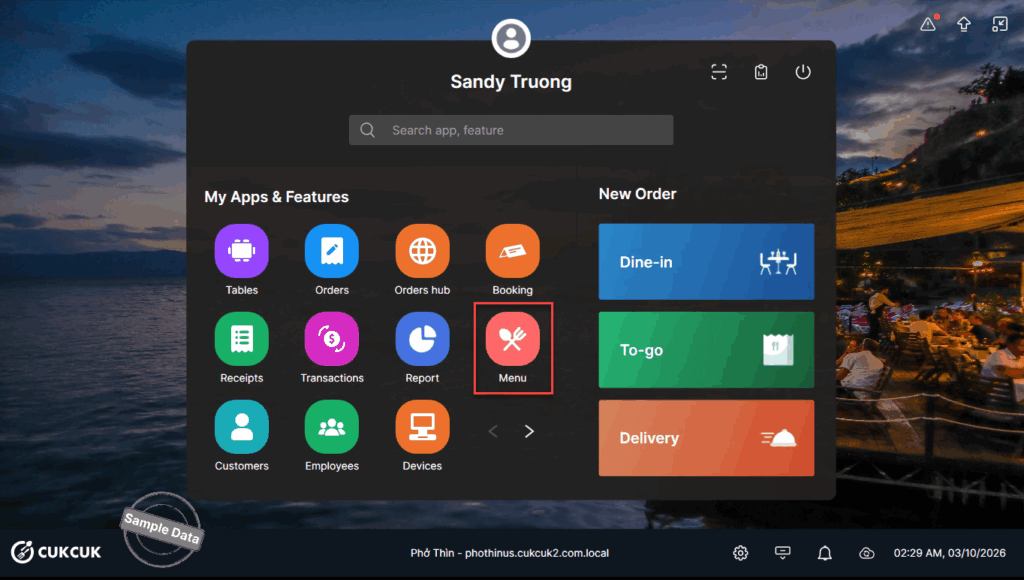 On POS, select Menu.