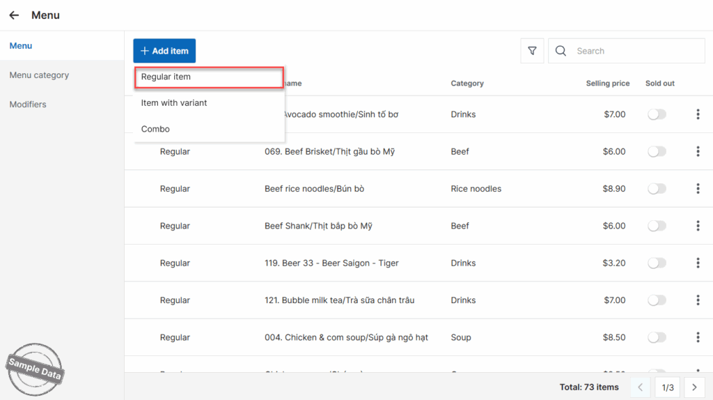 3. Add items on the POS