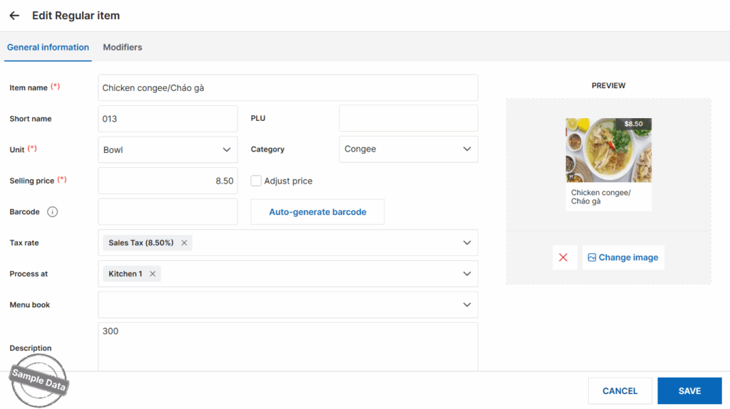 Tùy chỉnh giảm giá món trong ngày