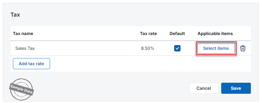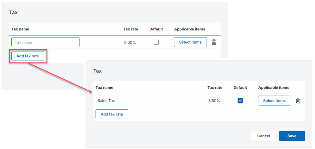 Click Add tax rate to create the tax rate you want to apply. Enter tax name, tax rate and put a check if this tax is default.